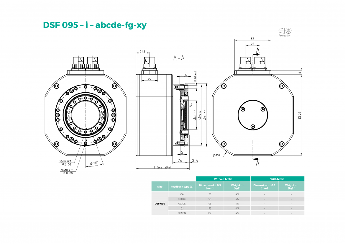 The DriveSpin® DSF “flat” series of electric actuators is characterized by the extremely short axial length with focus on maintaining the key features of the DriveSpin®. The DSF series was designed to be the most compact solution with very low mass and small dimensions. The DS “Flat” series consists of TwinSpin® reduction gear, servomotor and various feedback systems to be fully compatible with customer requirements. The DriveSpin® reduction gear used in the DSF actuators secures high accuracy, positioning repeatability, torsional stiffness as well as high carrying load due to the implemented bearing systems. Rated torque range of the DSF series is from 12 Nm to the 85 Nm.