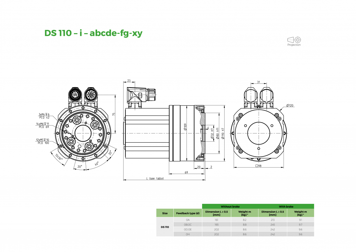The Drive Spin ® DS electric rotary actuators, as the basic type of actuators, provide rotary motion and transfer output torque with high radial-axial load capacity, and are the most accurate and precise solution in their category. The DS actuators are characterized by high dynamics, high flexible drive solution, guaranteed by an AC servomotor, and high robustness and overload capacity of TwinSpin ® reduction gear. DriveSpin ® high variability of voltage, brake feedback and electrical connections will satisfly customer requirements in many cases. Rated output torque range of the DS is from 18 Nm to 460 Nm.