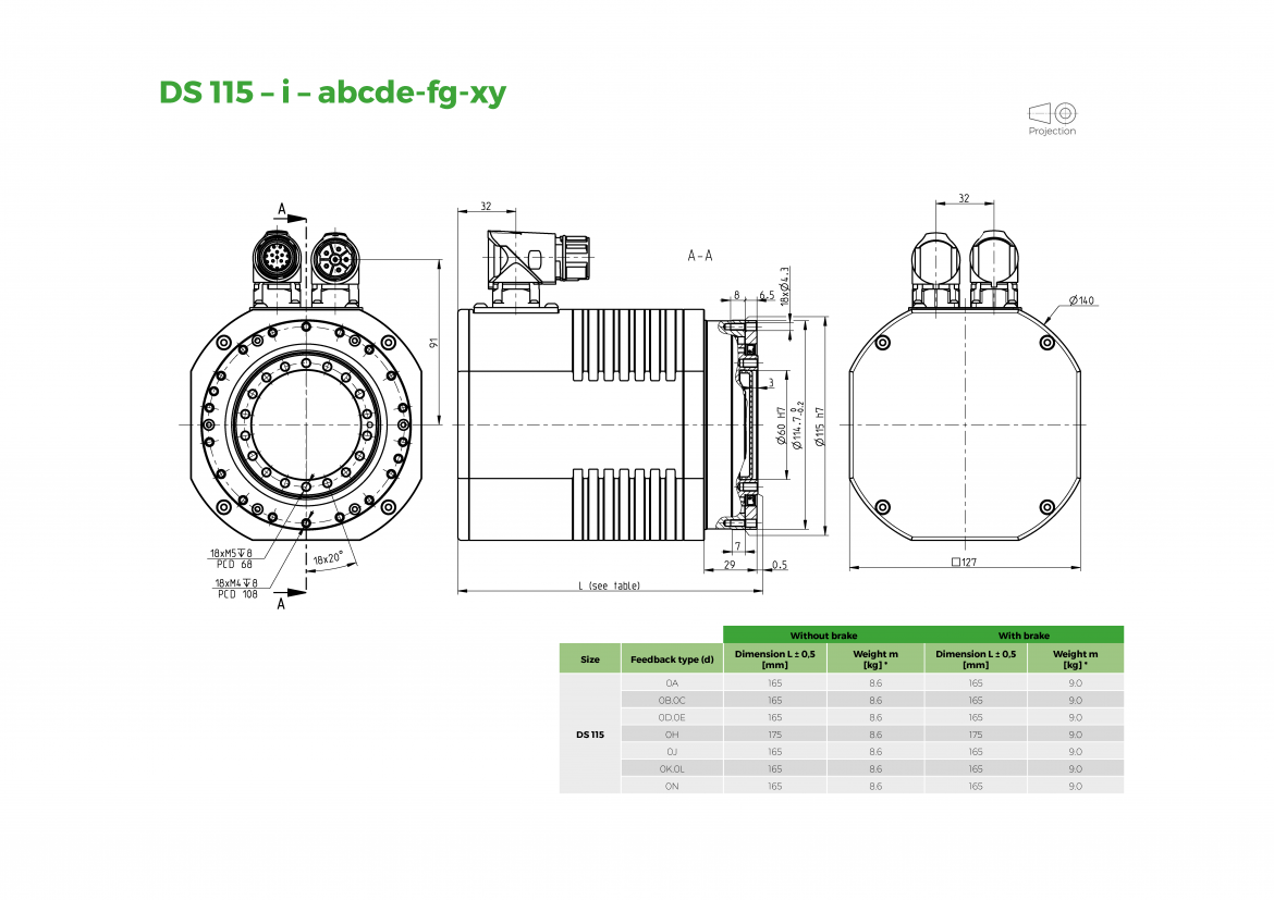 The Drive Spin ® DS electric rotary actuators, as the basic type of actuators, provide rotary motion and transfer output torque with high radial-axial load capacity, and are the most accurate and precise solution in their category. The DS actuators are characterized by high dynamics, high flexible drive solution, guaranteed by an AC servomotor, and high robustness and overload capacity of TwinSpin ® reduction gear. DriveSpin ® high variability of voltage, brake feedback and electrical connections will satisfly customer requirements in many cases. Rated output torque range of the DS is from 18 Nm to 460 Nm.