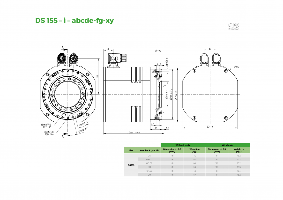 The Drive Spin ® DS electric rotary actuators, as the basic type of actuators, provide rotary motion and transfer output torque with high radial-axial load capacity, and are the most accurate and precise solution in their category. The DS actuators are characterized by high dynamics, high flexible drive solution, guaranteed by an AC servomotor, and high robustness and overload capacity of TwinSpin ® reduction gear. DriveSpin ® high variability of voltage, brake feedback and electrical connections will satisfly customer requirements in many cases. Rated output torque range of the DS is from 18 Nm to 460 Nm.